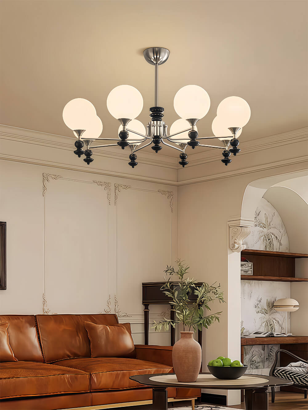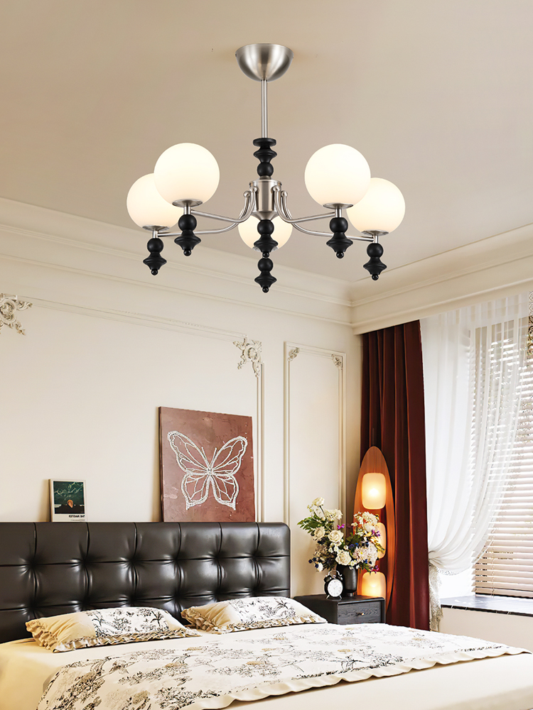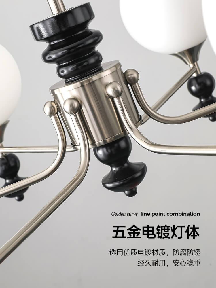 主体材质:五金电镀+木艺+玻璃罩