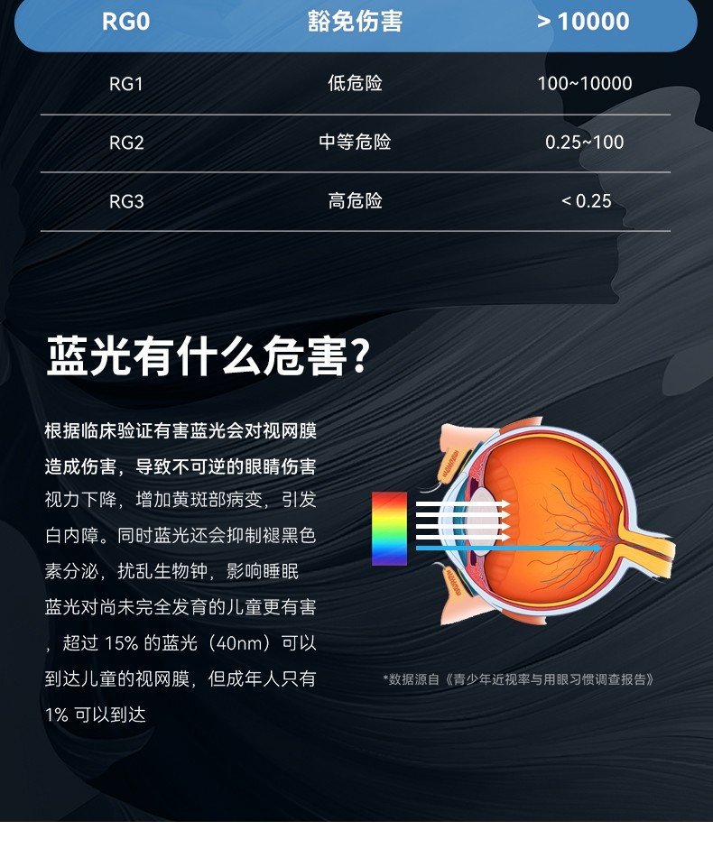 蓝光危害等级::低蓝光,无频闪,高显指,符合教育照明标准