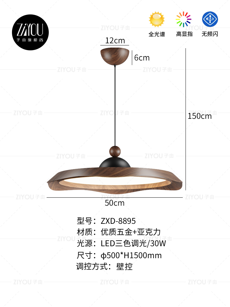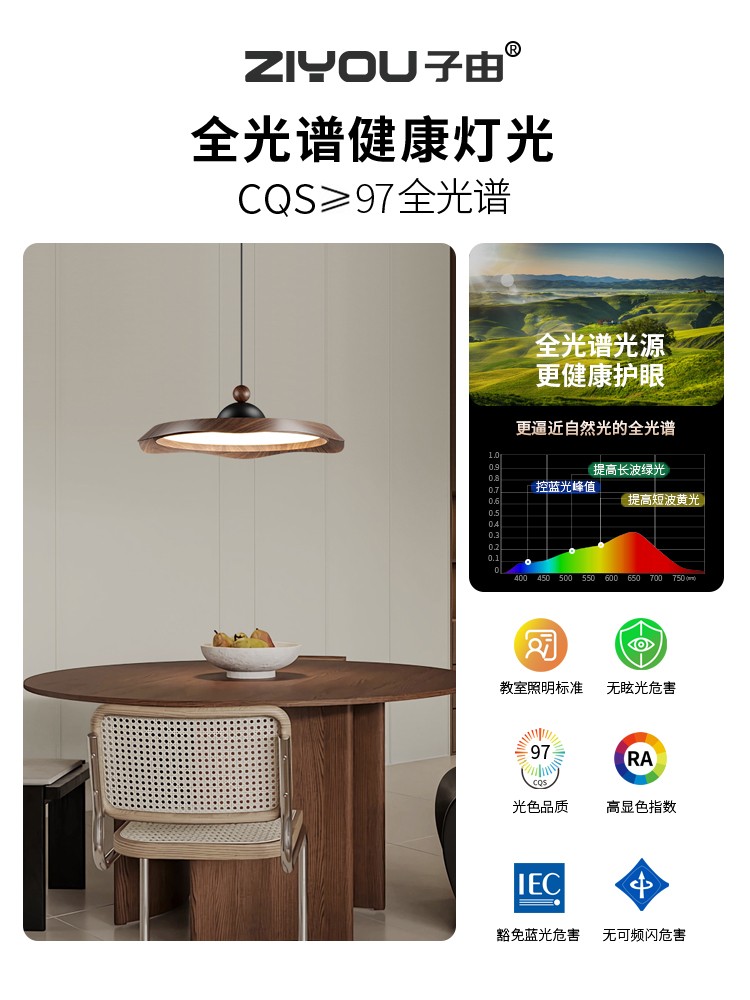 光源:LED三色变光+全光谱护眼