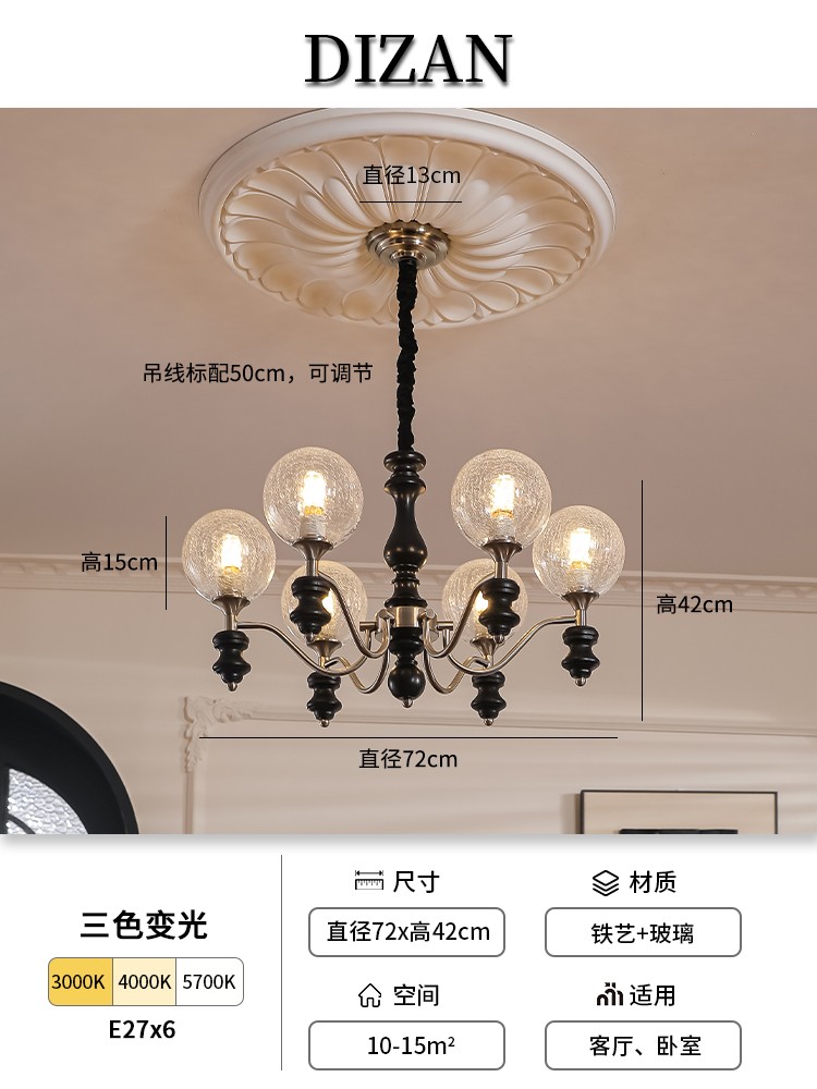 颜色:白蜡木艺黑色+艺术玻璃灯罩透明