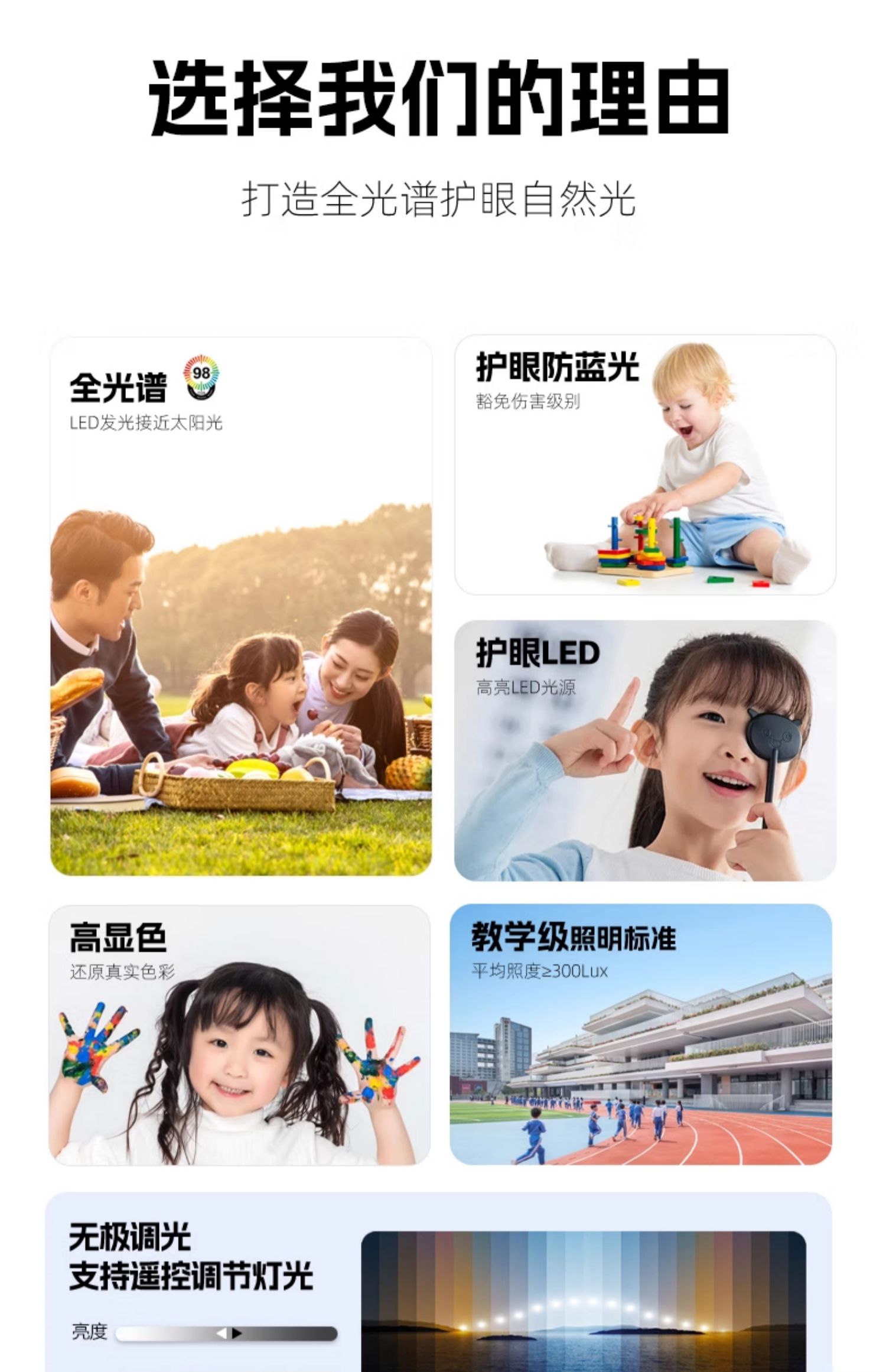 光源:自带led三色护眼光源