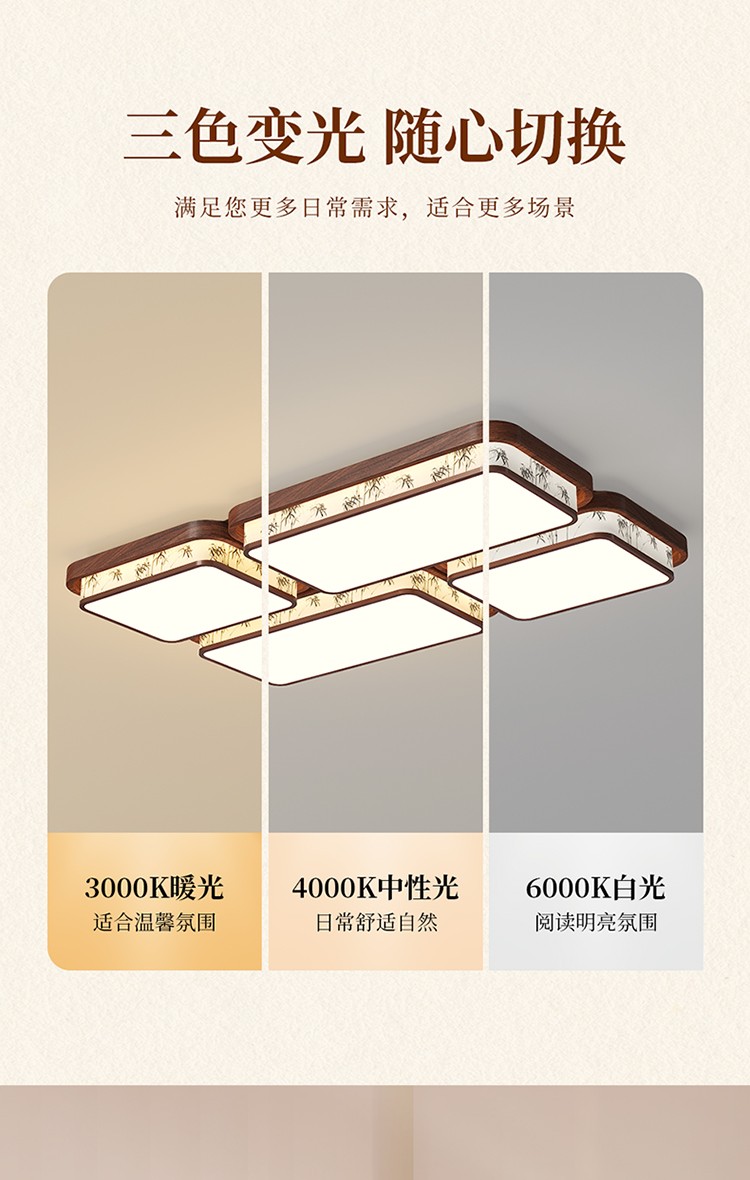 光源:LED三色变光+无极天猫