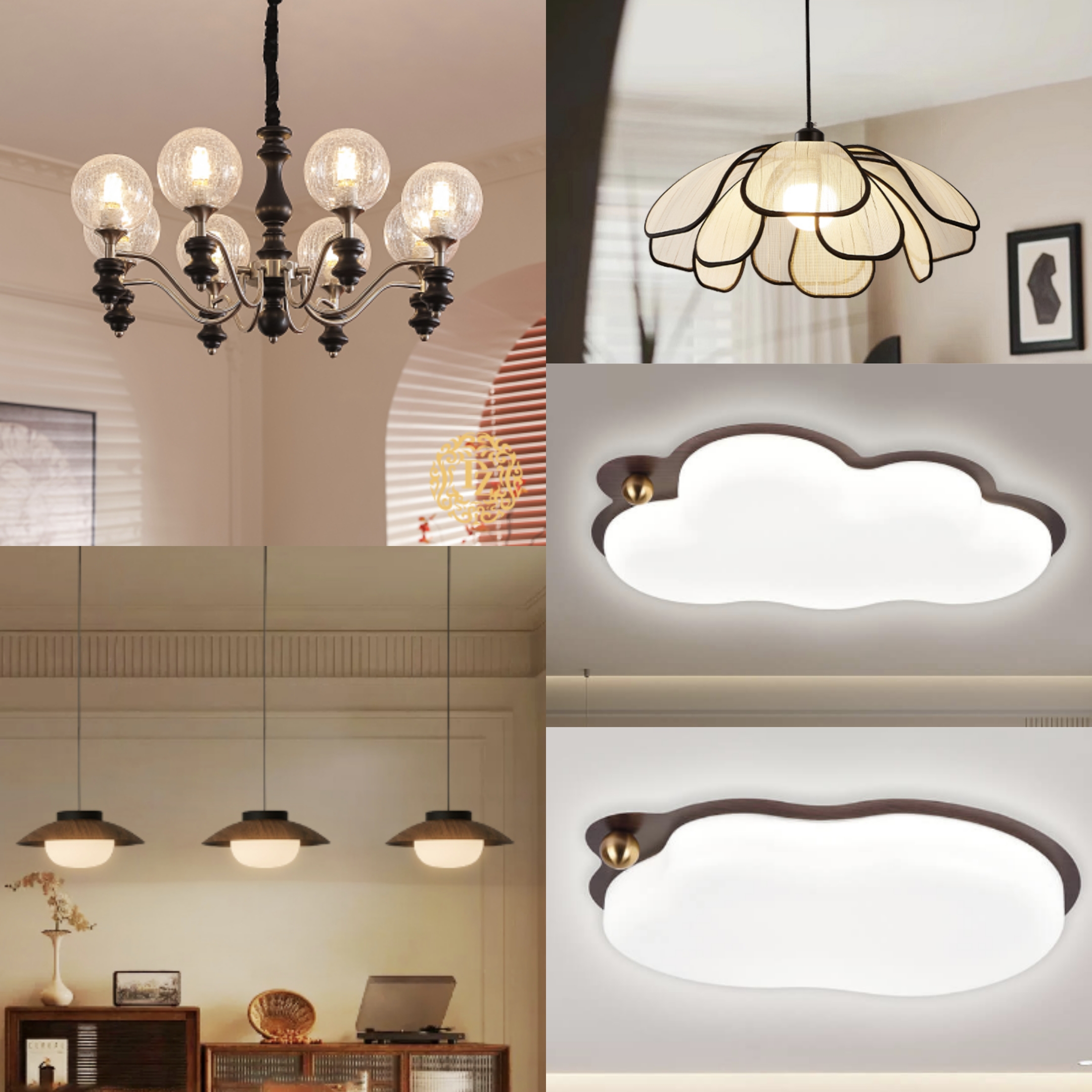 客厅:1059-8头-客厅E27*8(不含)白蜡木艺黑色+艺术玻璃灯罩透明