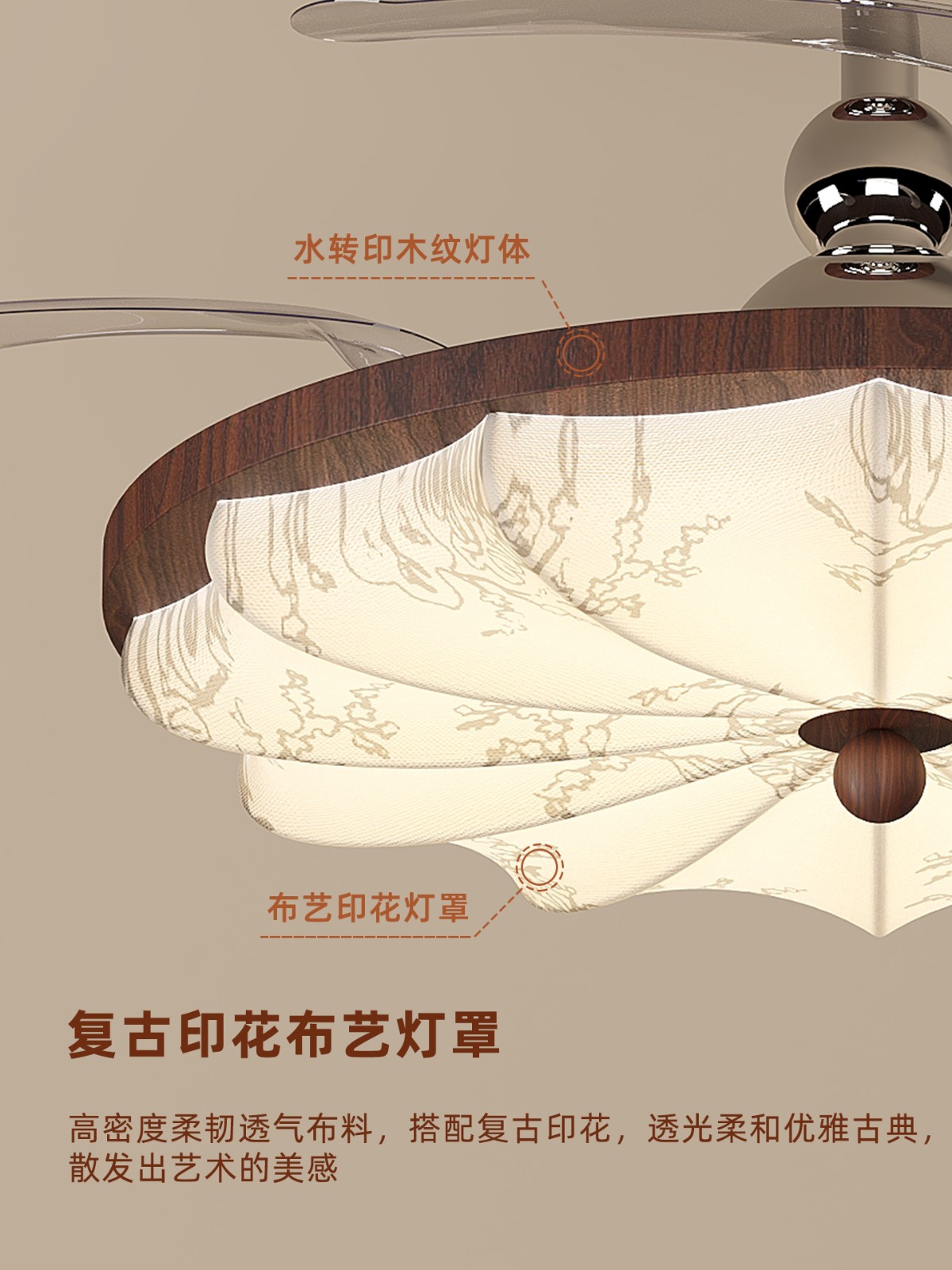 主体材质:布艺罩子+水转印铁艺+PVC灯罩