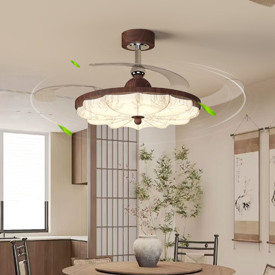 餐厅:259-花瓣风扇 *自带led三色变光+离线遥控*布艺罩子+水转印工艺+纯铜电机
