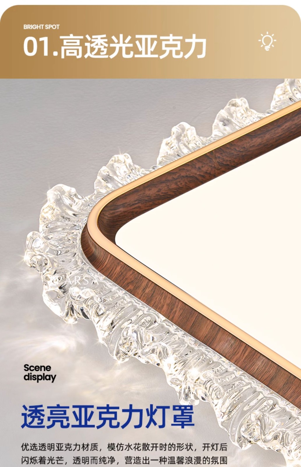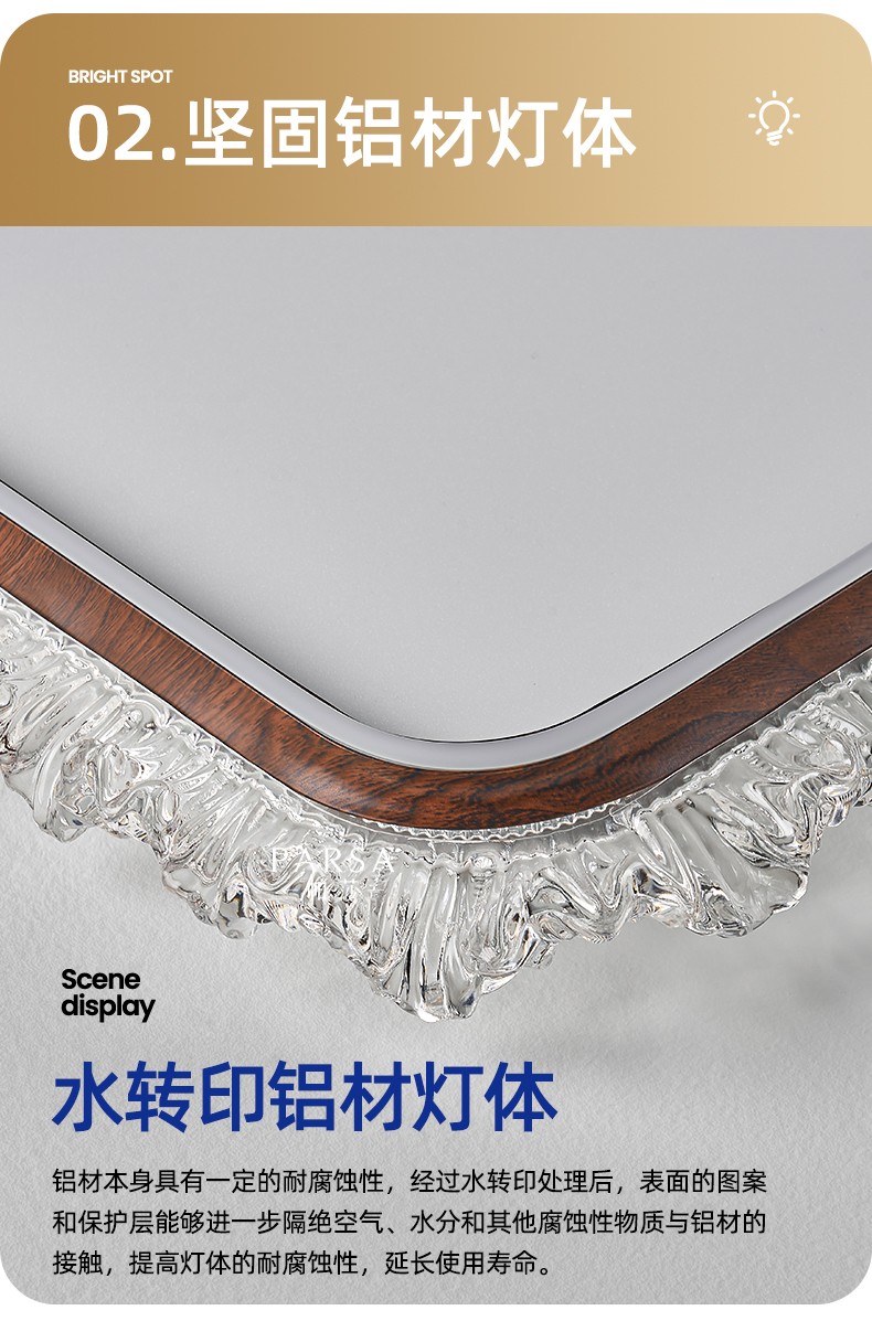 主体材质:水转印胡桃木色+导光菱晶板