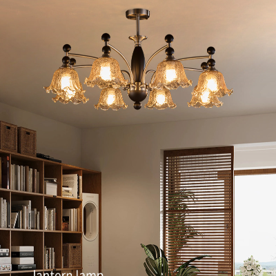 餐厅:1081-6*E27*6个(不含)* 合金+实木+玻璃