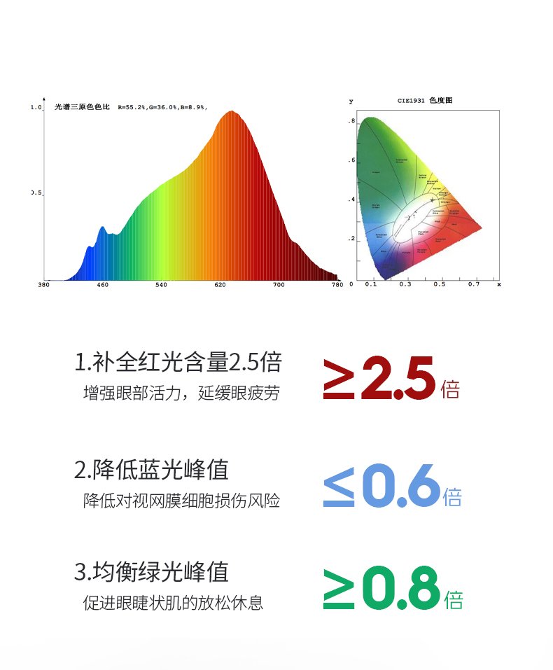 光源:LED三色变光+全光谱护眼